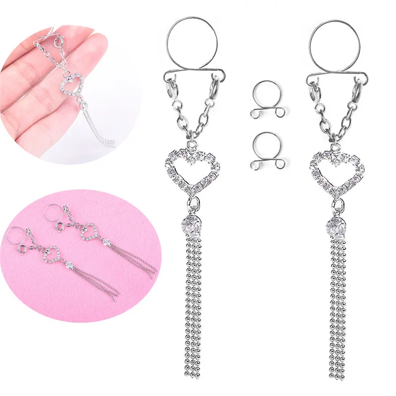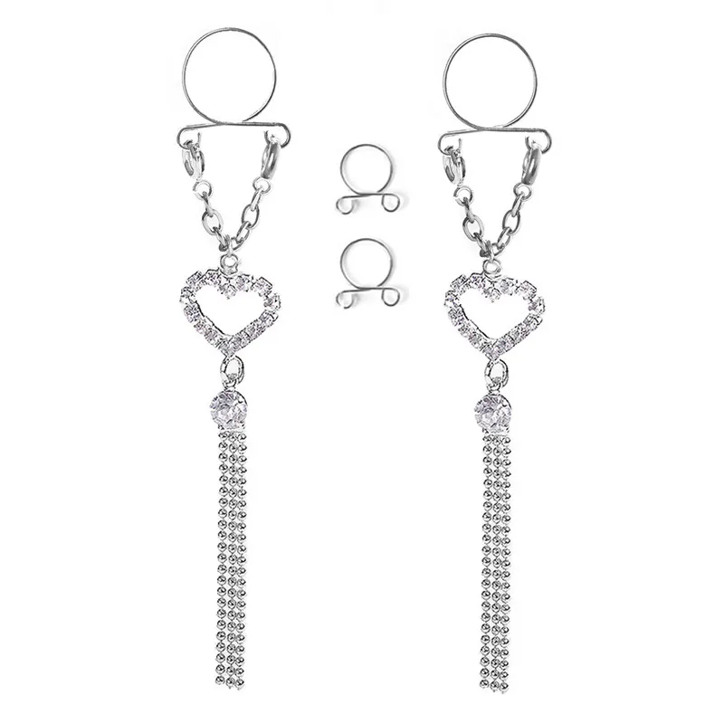 HelloLook, Длинная кисточка с кристаллами, не пирсинг для соска, сексуальное регулируемое искусственное пирсинг для соска, висячие кольца, украшения для тела