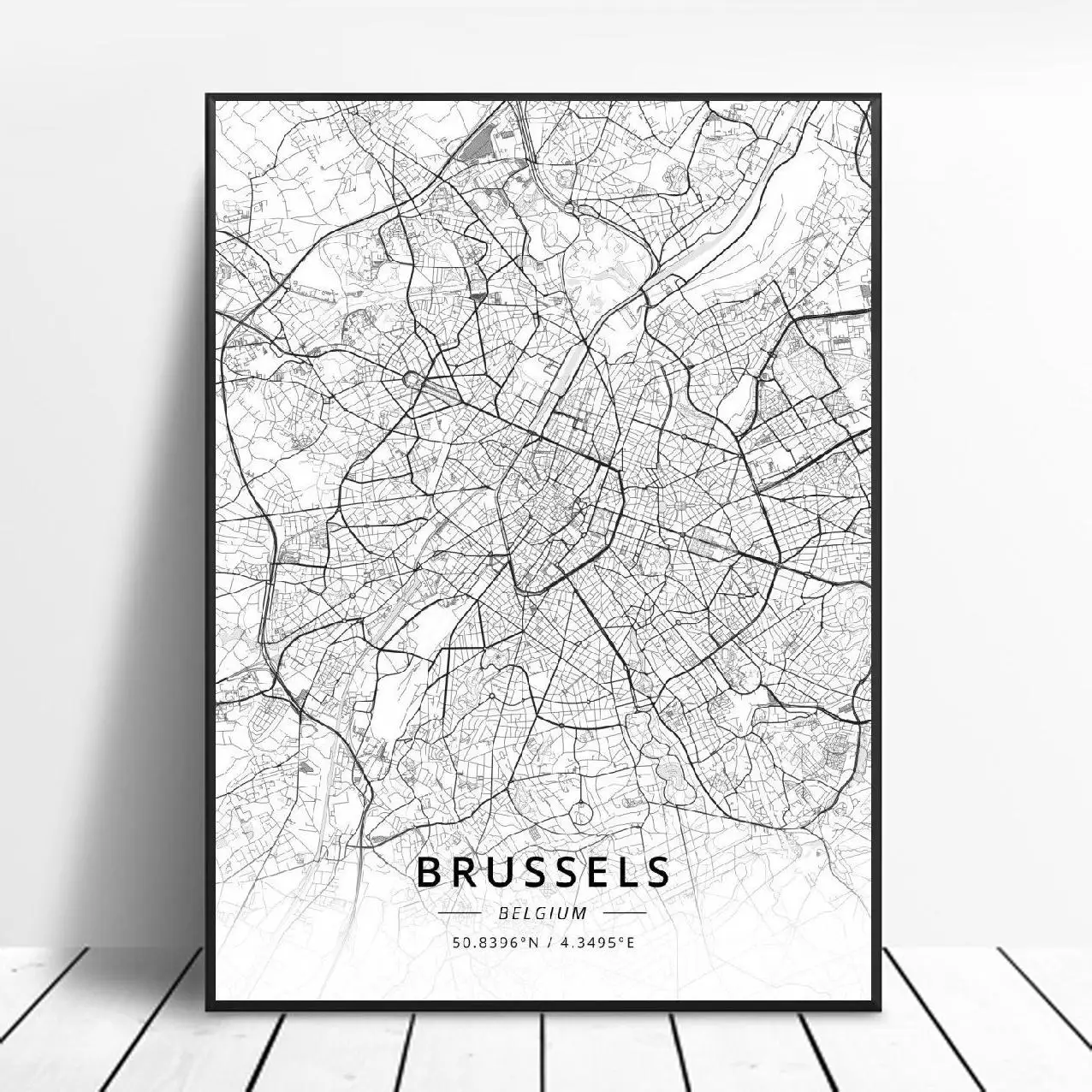Черно-белый холщовый постер с принтом карты города стальбум, Соврем...