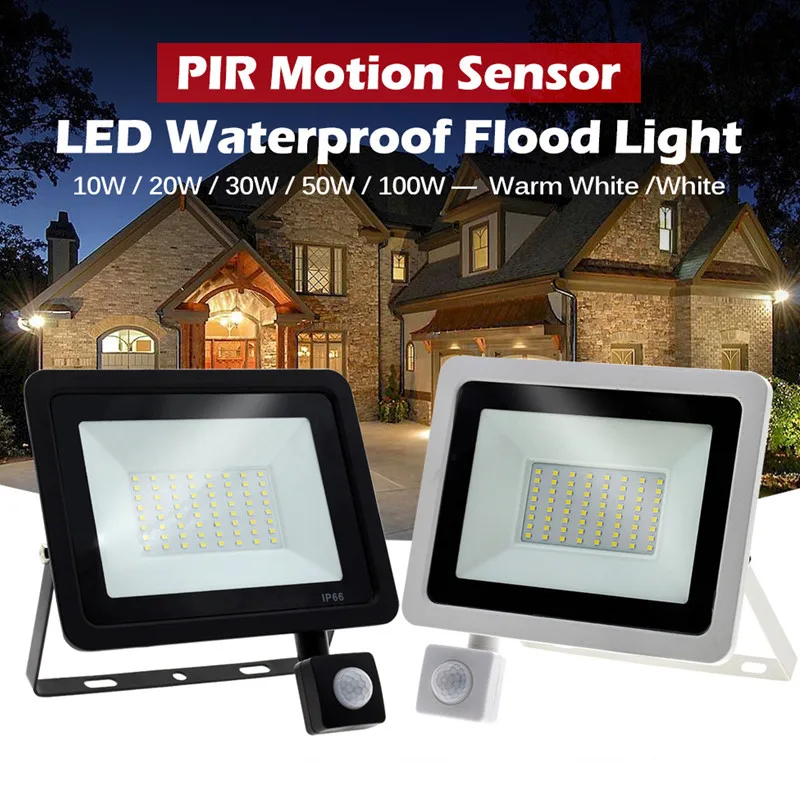 Водонепроницаемый светодиодный уличсветильник 10-100 Вт, прожектор 220 В с пассивным инфракрасным датчиком движения, уличный прожектор для сада и улицы