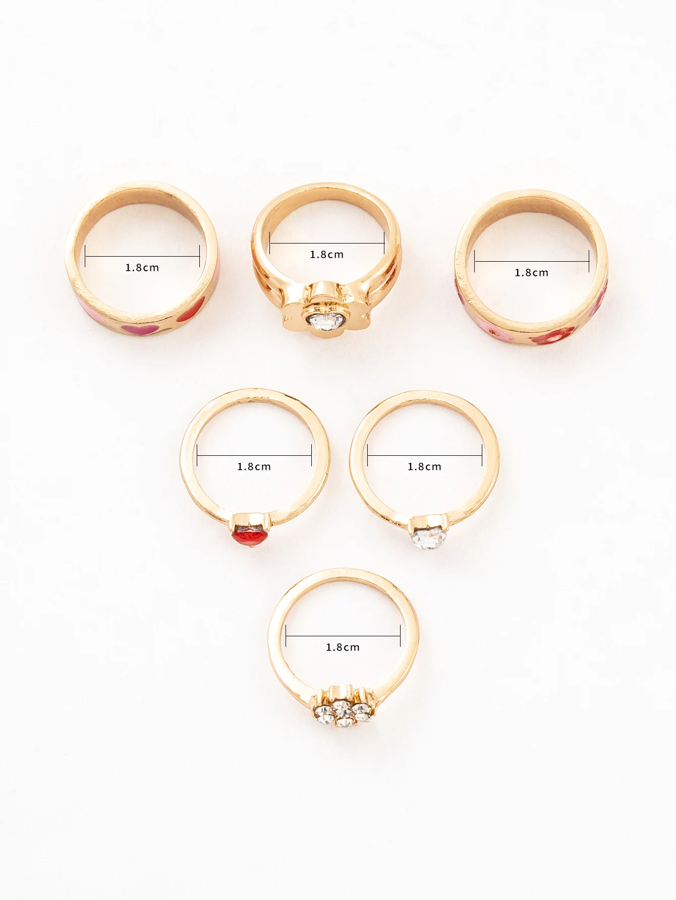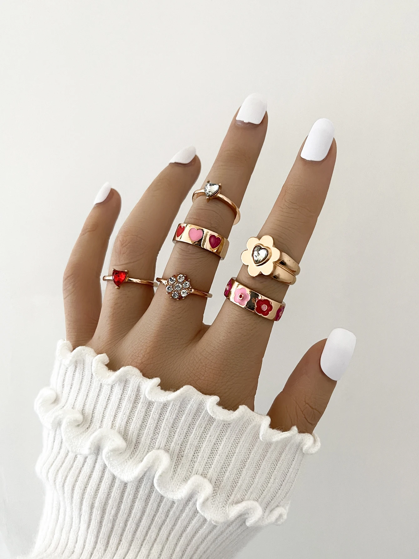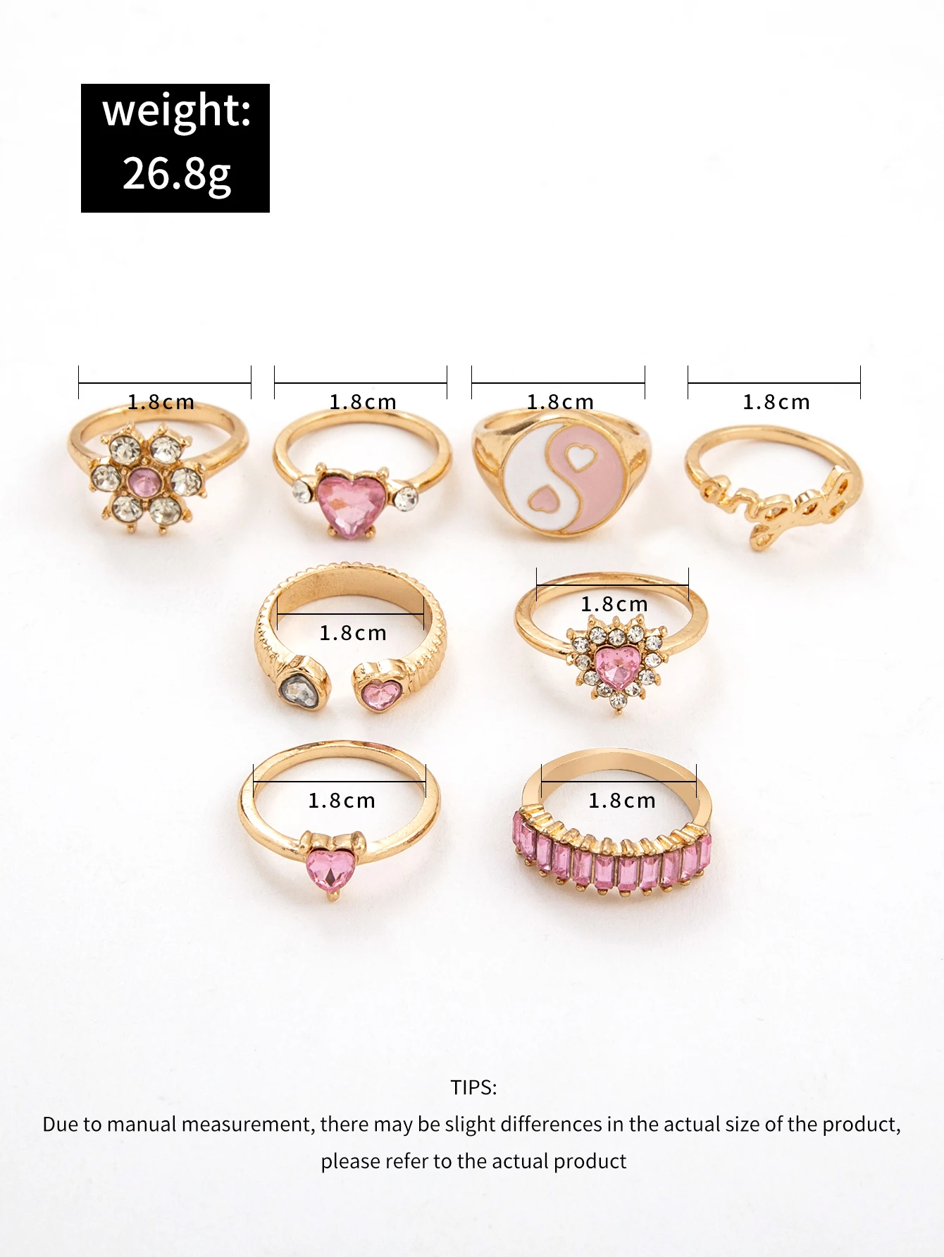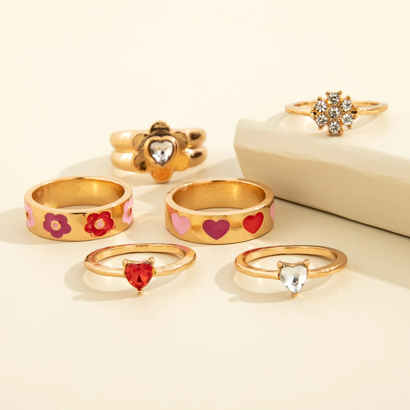Набор милых металлических золотых колец в форме сердца Aprilwell 6-8 шт. для женщин в эстетике Мода 2021 Y2k Shinestone винтажные цветочные кольца ювелирные изделия