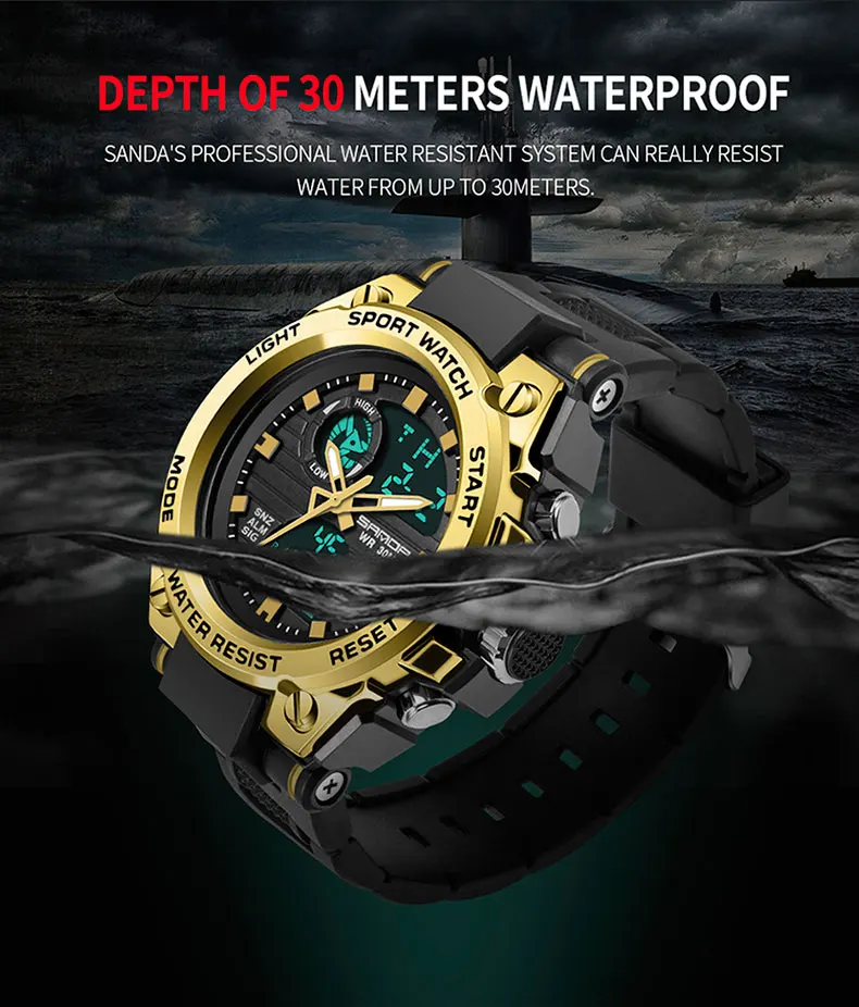 Часы мужские SANDA, спортивные, водонепроницаемые, с двойным дисплеем