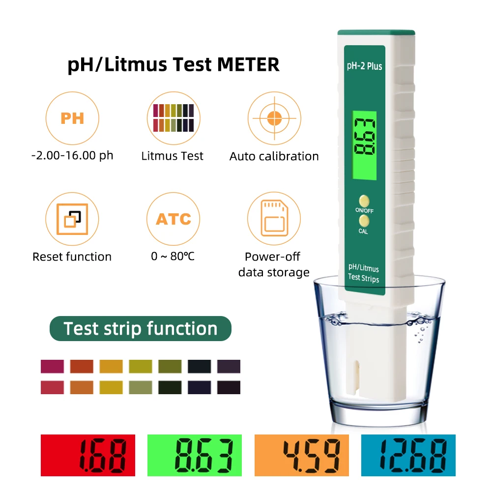 PH-2Plus ph-метр-это недавно разработанный ph-метр, который похож на лакмусовую бумагу с изменяющимся цветом дисплеем с подсветкой. Он прост в использовании. При погружении в измеряемый раствор считывание может быть быстро отображено на ЖК-дисплее и автоматически откалибровано. Просто нажмите калибровку можно завершить одним нажатием кнопки. Не нужно использовать цветную карту и тестовую полосу, чтобы отличить значение pH, быстро и точно. Мини портативный. Широко используется, это идеальный инструмент для любого аквариума, рыболовства, бассейна, спа, школьной лаборатории, еды и напитков, питьевой воды и т. Д.