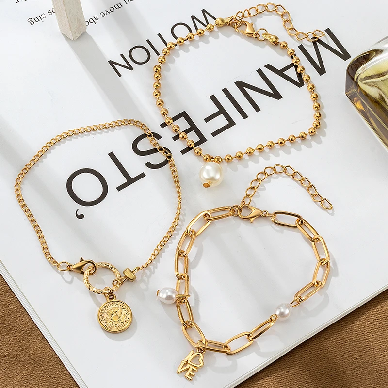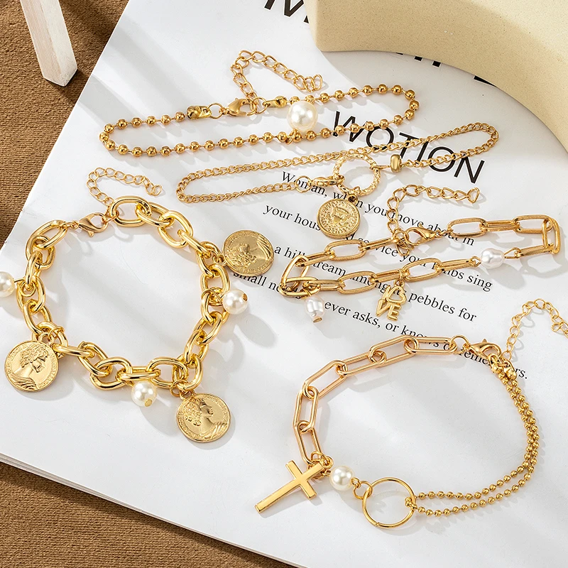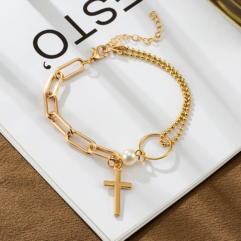 Женский браслет на цепочке, с золотыми жемчужинами и бусинами, в стиле панк, подарочные украшения, 2021