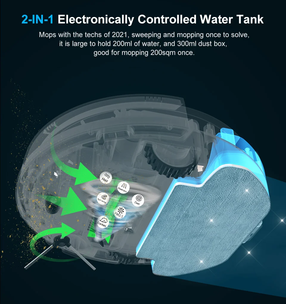 2-in-1 water tank300ml Dust box 200ml Water tank