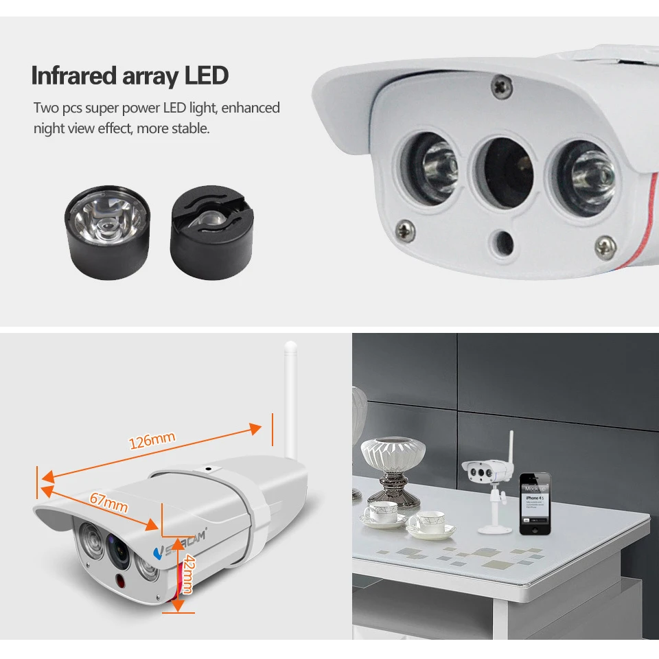 HDIp-камера,Мобильный Удаленный просмотр. IP67 водонепроницаемыйИПылезащитный. Подходит для солнечных, дождливых, грозовых, снежных, песчаных. ПоддержкаIOS,AndroidТелефон и окноПК. ПLUg и play, Простота подключения. SOpport оба беспроводныхWi-Fi 2,4 ГГцПодключение иКабель локальной сетиПодключение. SВерхний Порт4 пользователяПросмотр в то же время, поддержка4 камерыЧасы на одном экране. Поддержка до128 ГБMicro SD/TF карта storagЕ. Сигнализация обнаружения движения, Записывайте и нажимайте Оповещение на ваш мобильный телефон. Воспроизведение видеоФункция, не пропустите момент, который вы хотите знать. 24 часа Хранитель с инфракрасным ночным видениемАвтоматический переключатель, 18 ИК-светодиодов, расстояние ночного видения до 15 метров. Запись без интернета. 4 Защита системы защиты, для предотвращения утечки информации.2 мегапиксельная Супер прозрачная Водонепроницаемая сетевая камера