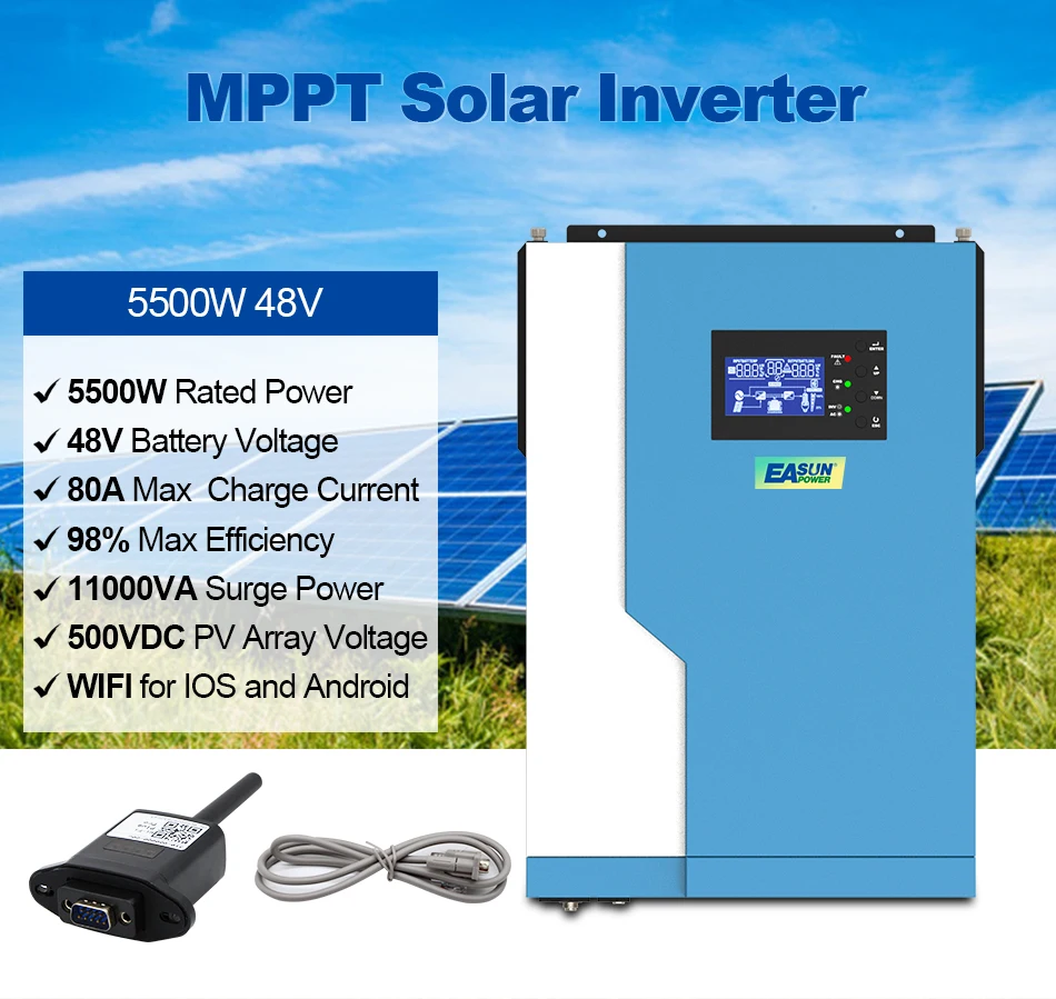 5500 кВА, В постоянного тока, солнечный инвертор с Wi-Fi, 48 В, гибридный инвертор немодулированного синусоидального сигнала, а, зарядное устройство в постоянного тока, вход PV, Вт