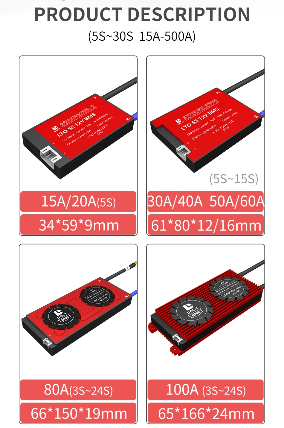 DALY LiFePo4 BMS 16S 48V Li-Ion LTO 12V 24V 36V 60V 72V 4S 8S 10S 1...