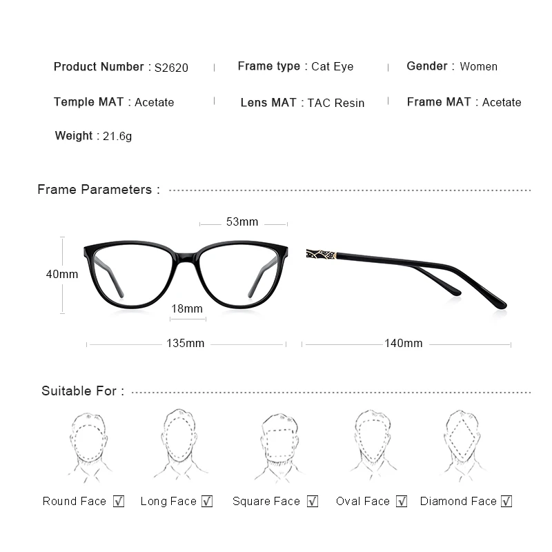 Оправа для очков Женская ацетатная в стиле кошачий глаз, S2620