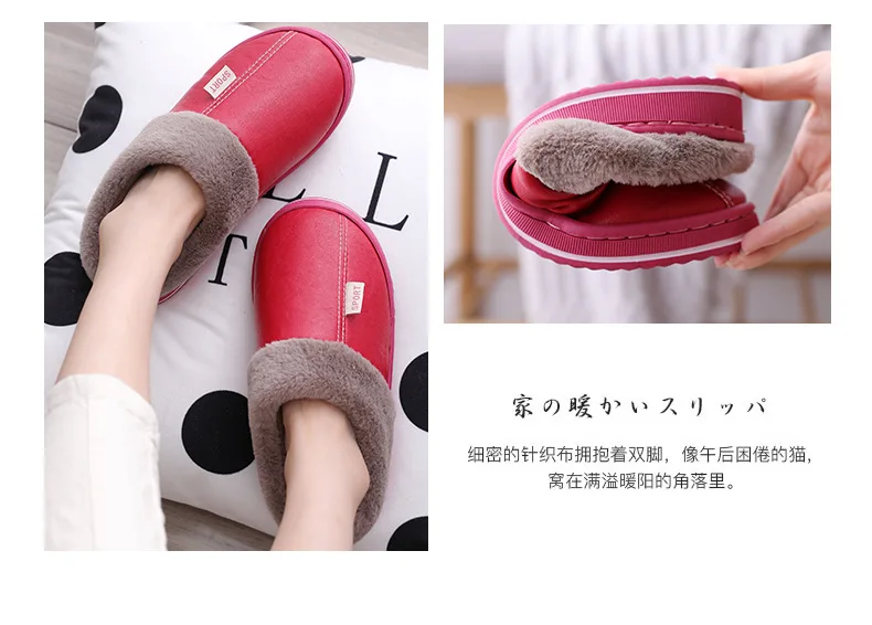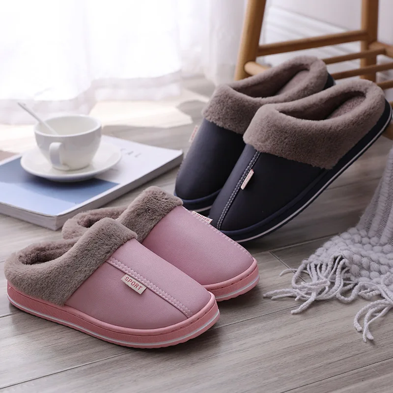 Водонепроницаемые тапочки из ПУ кожи для мужчин и женщин, зимние пл...