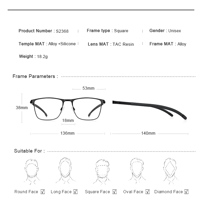 Очки унисекс квадратные с защитой от синего света, S2394FLG