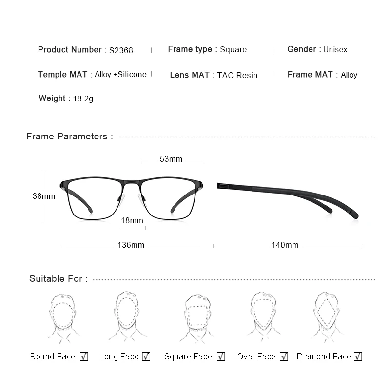 Мужские квадратные ультралегкие очки для близорукости MERRY'S S2179