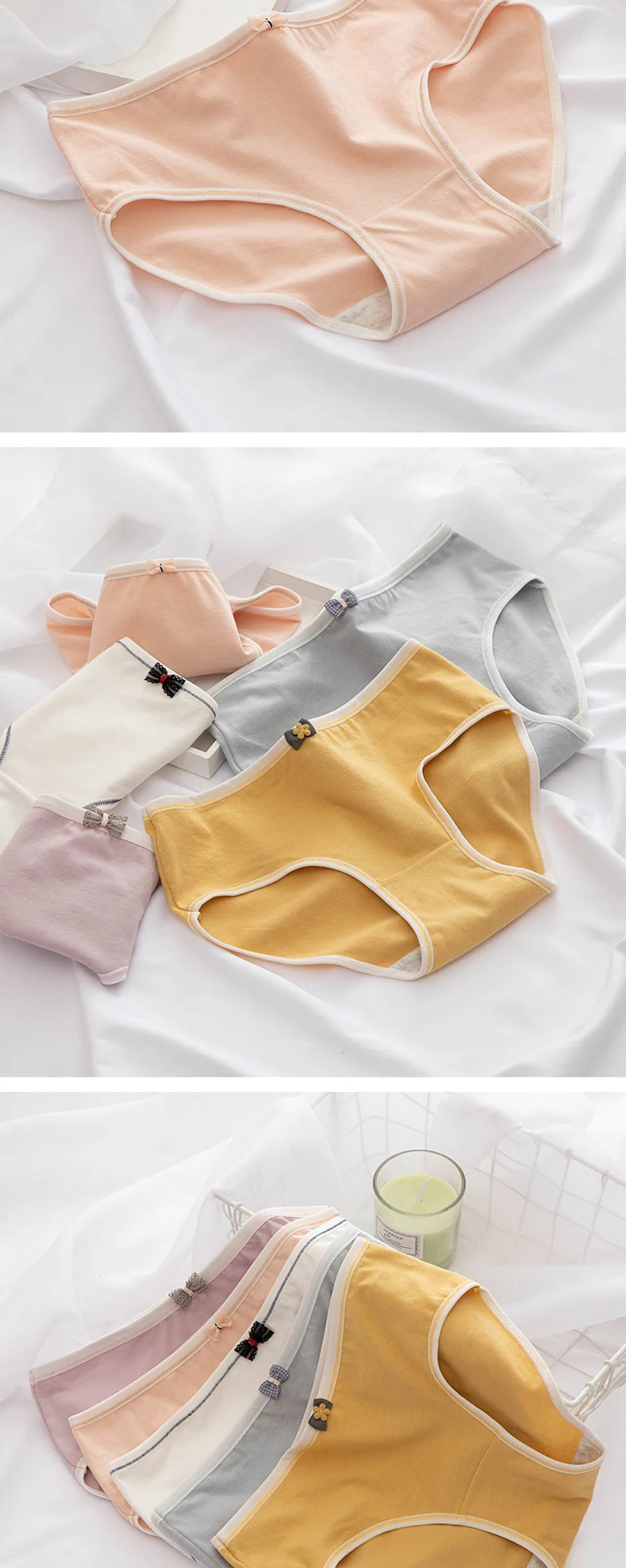 Новое Стильное японское хлопковое женское нижнее белье, простые дышащие милые студенческие Трусы со средней талией для девушек, милые модные женские трусики