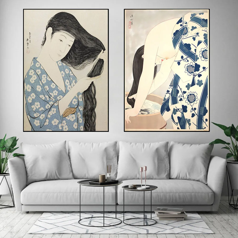 Постеры и принты Ukiyoe в японском стиле, Картина на холсте с расчесывающими волосами Geisha и мытьем головы, винтажные настенные картины для гостиной, домашний декор