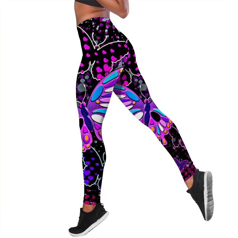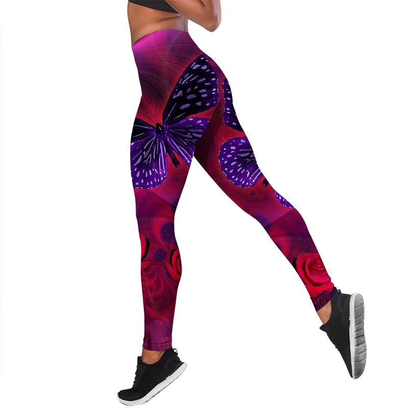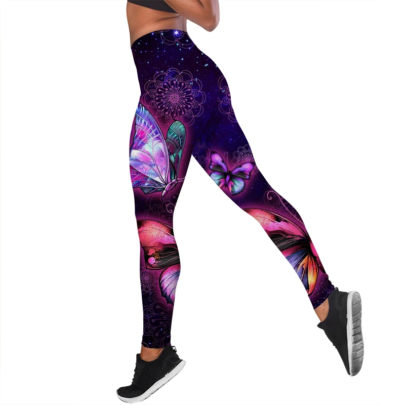 Леггинсы женские эластичные с принтом бабочек и высокой талией