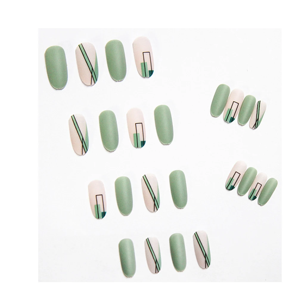 Накладные ногти, 24 шт., матовые зеленые патчи для ногтей, клеевой тип, съемный длинный абзац, Модный маникюр, накладные ногти, патчи, подарки для девочек