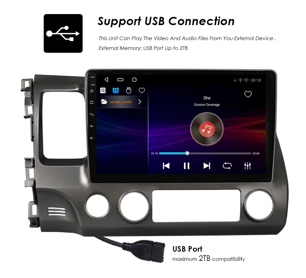 Автомагнитола для Honda Civic 2006-2011, 2Din, 10,1 дюйма, Android ...