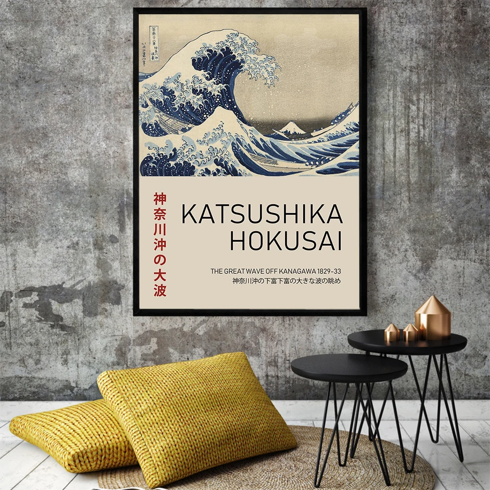 Хокусай большой плакат с волнами Кацусика Хокусай выставка холст рисунок, напечатанная картина Винтаж стены Спальня украшение дома