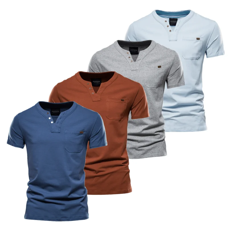 Мужская Однотонная футболка AIOPESON, на пуговицах, с круглым вырез...