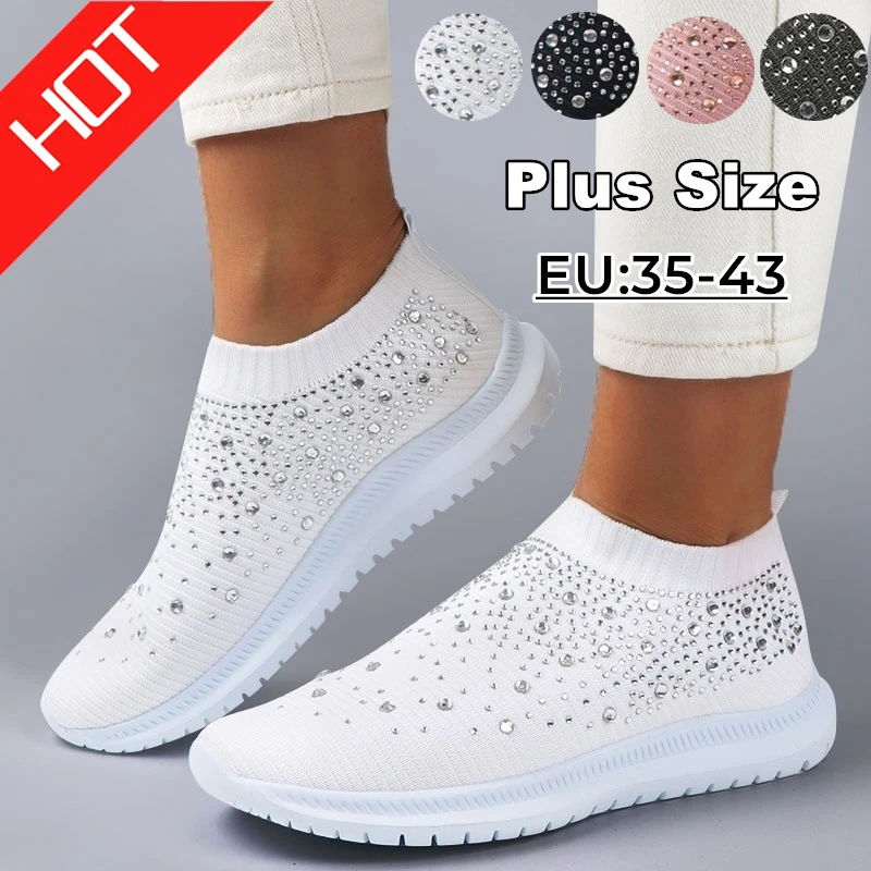 Кроссовки-носки женские, Вулканизированная подошва, блестящие, без шнуровки, вязаные, повседневная обувь для тренировок