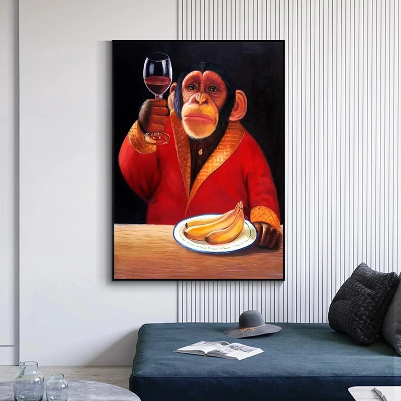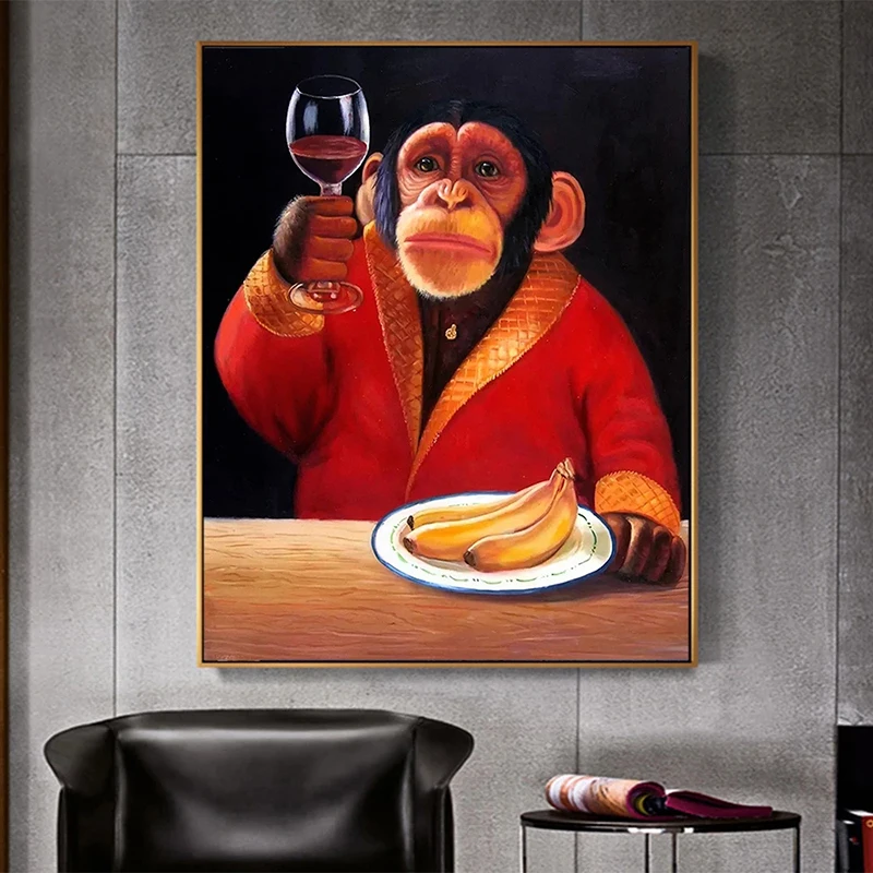 Картина на холсте с изображением обезьяны, шимпанзе, питьевого вина, курения, постеры с животными, Настенная картина для украшения гостиной