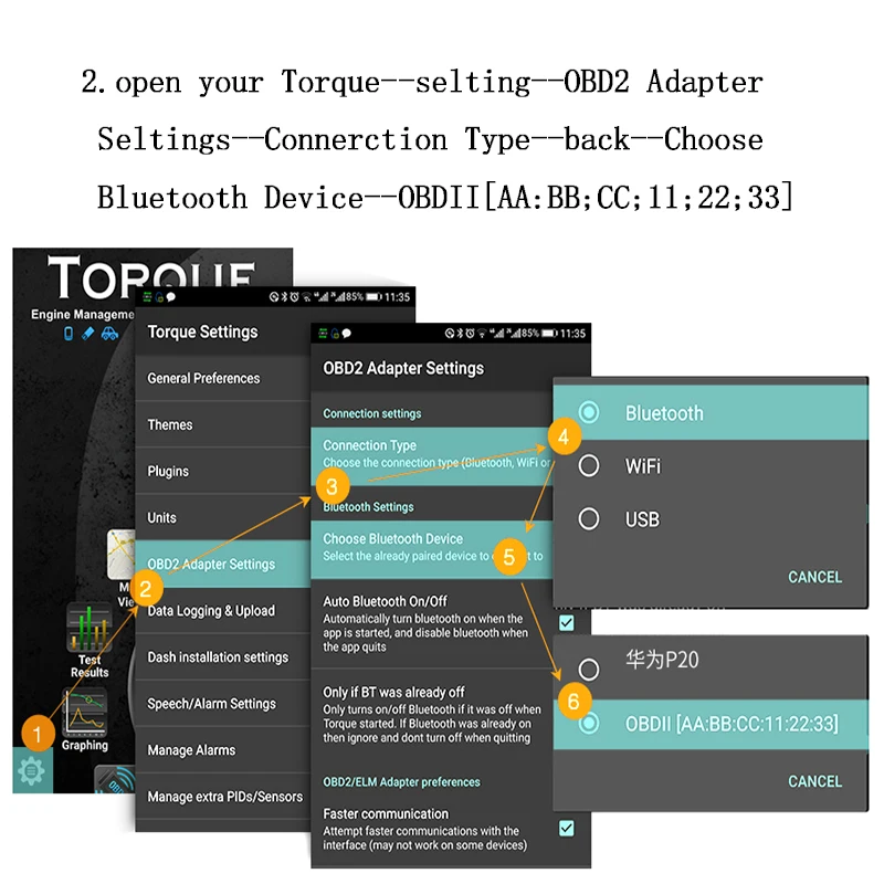 Диагностический сканер OBD2 HH ELM327, Bluetooth-адаптер для диагностики двигателя автомобиля, для Android и ПК