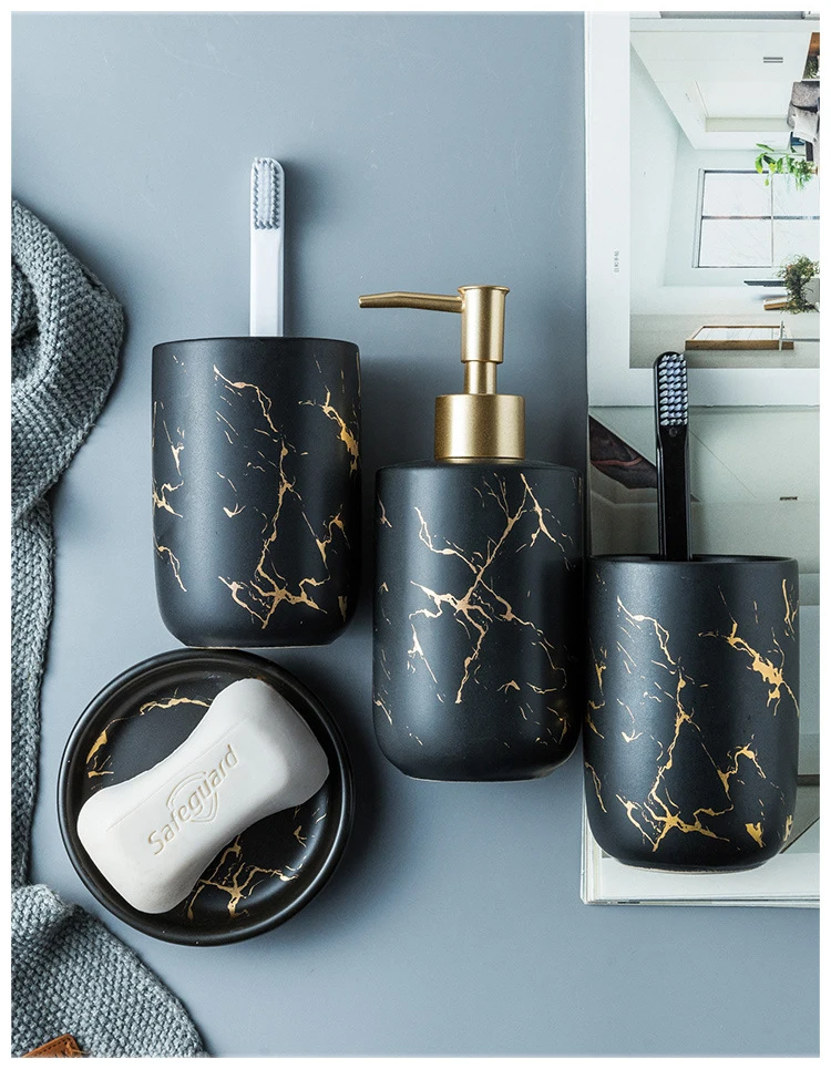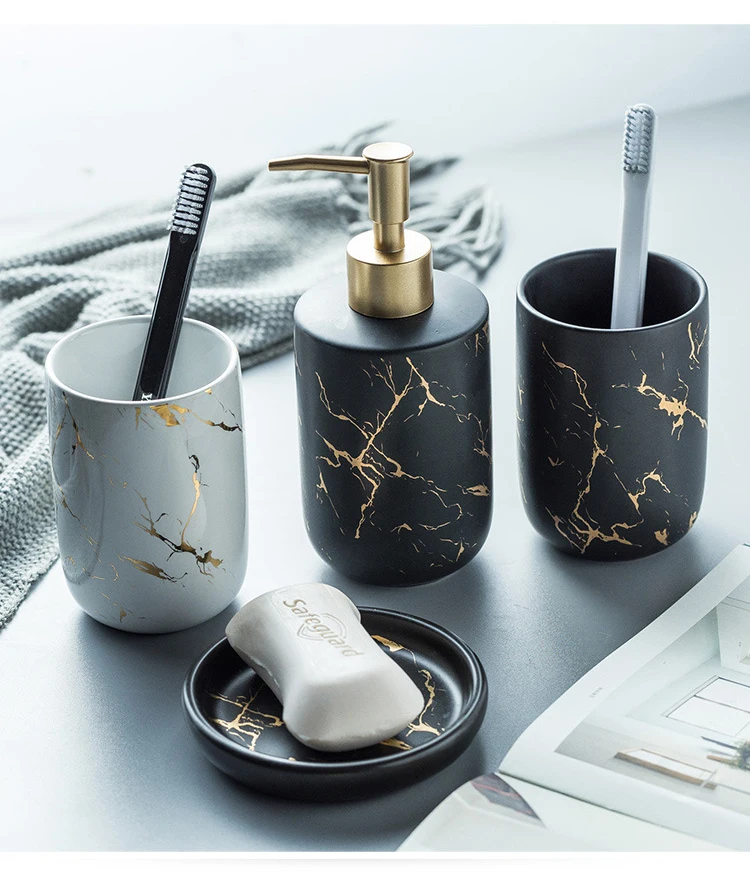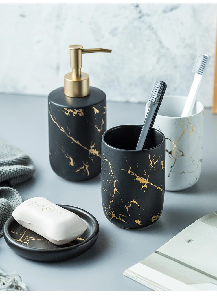 Роскошный керамический набор аксессуаров для ванной комнаты, диспенсер для мыла с имитацией мрамора, диспенсер для бутылки, держатель для зубной щетки, чашка для полоскания рта, мыльница