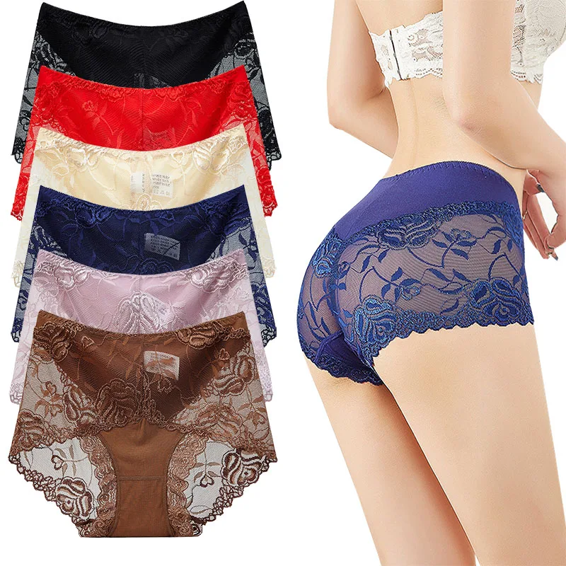 6 штук Модальные трусы женские трусики с мягкой сетчатой тканью, сексуальные прозрачные трусы женское белье удобные размера плюс нижнее белье