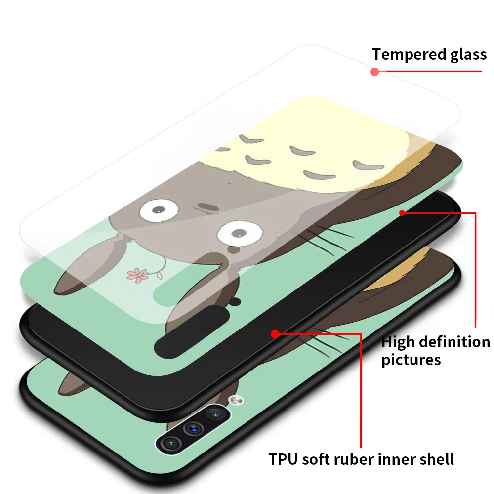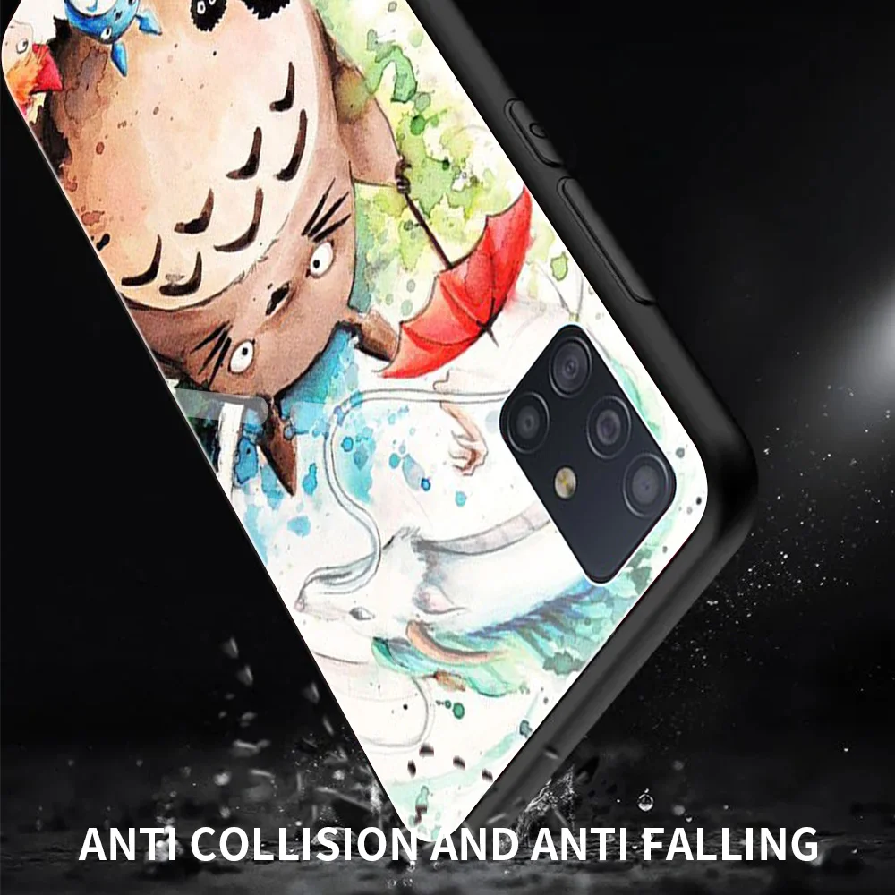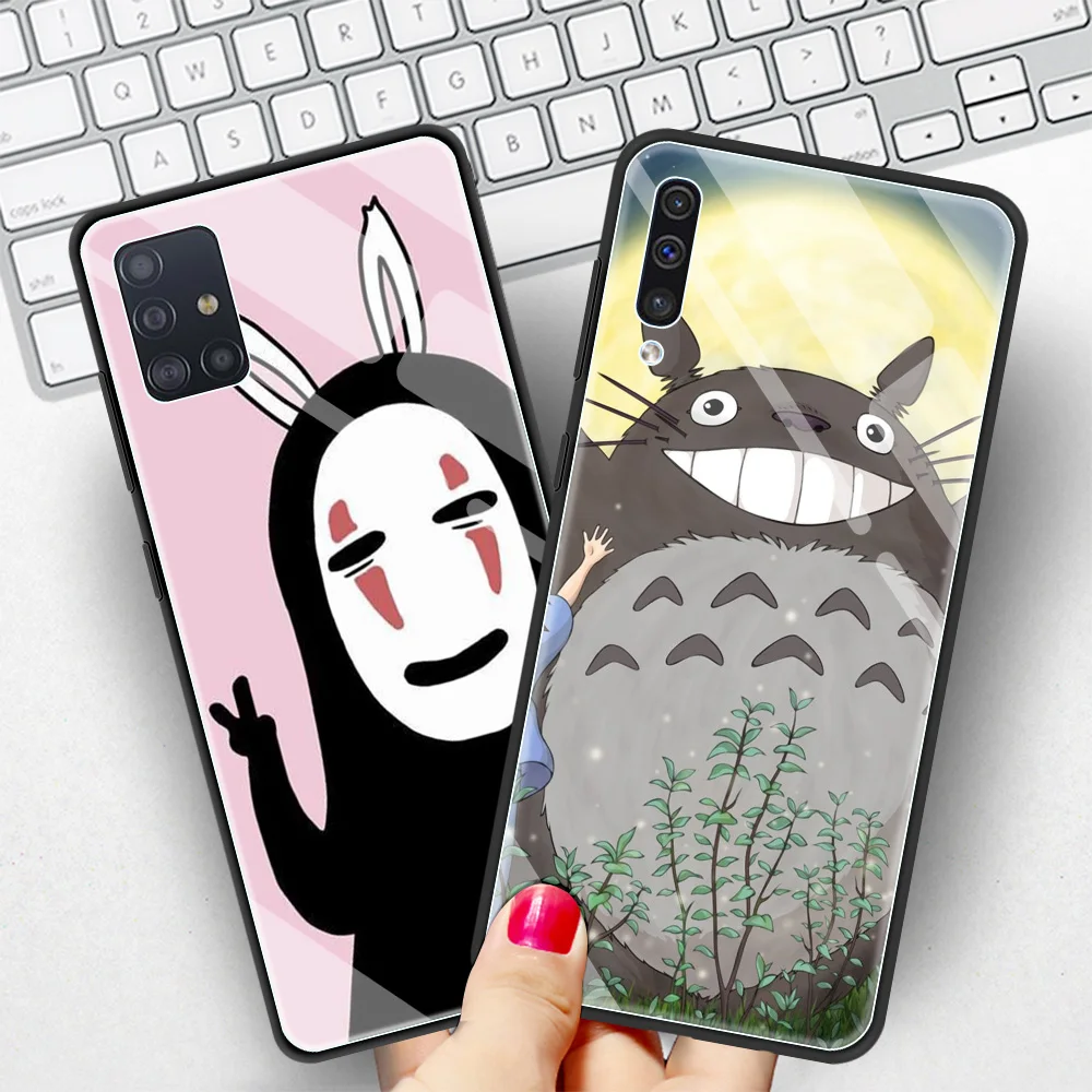 Печать стекло чехол для телефона для Samsung Galaxy A51 A71 A50 A31 A21s A70 A72 A52 M31 Мягкий край Чехол аниме Тоторо Ghibli Унесенные призраками