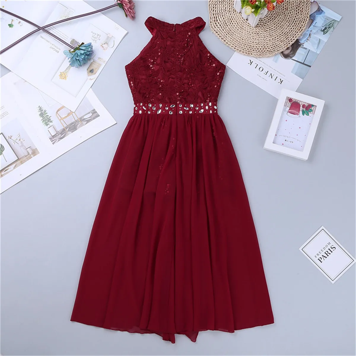 Платье-комбинезон для девочек без рукавов с цветочным кружевом и стразами; Платье для торжеств; Для школы; Для танцев; Для дня рождения; Вечерние; Летняя детская одежда