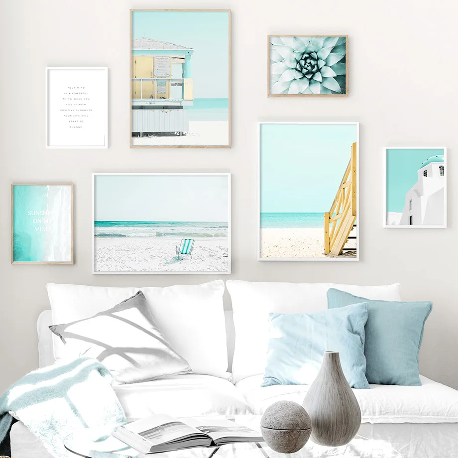 Пейзаж, морские пляжные растения, строительные цитаты, настенное искусство, холст, живопись, скандинавские постеры и принты, украшение для гостиной, настенный картина
