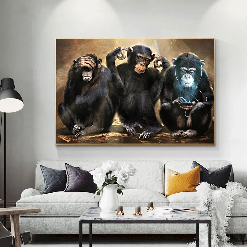 Три забавные орангутаны холст картины с принтом обезьяна постеры с животными и принты настенные картины для Гостиная, украшения для дома Cuadros