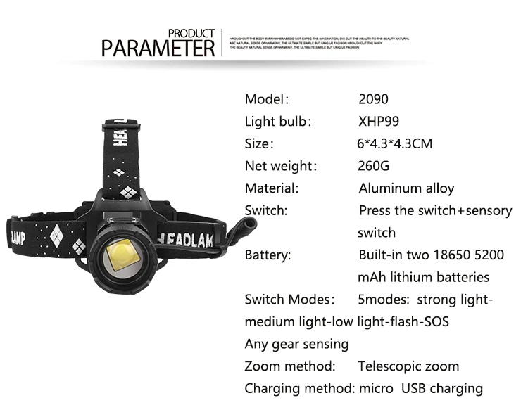 • Бренд: Litwod• Название модели: 2090• Количество: 1 шт.• Светодиодный светильник: XHP100• Режим: 5 режимов (сильный светильник-средний Светильник-низкий светильник-вспышка-SOS) (датчик любого режима)• Время зарядки: 6-10 часов