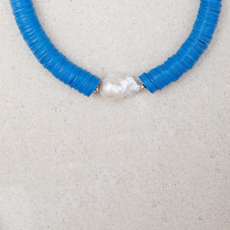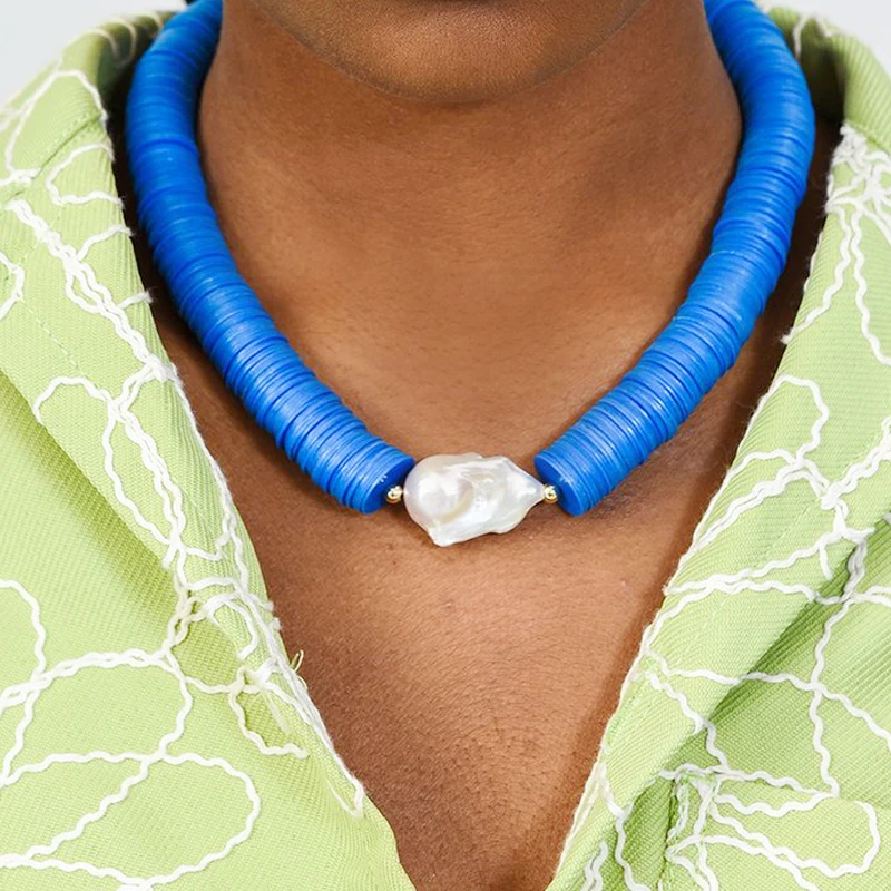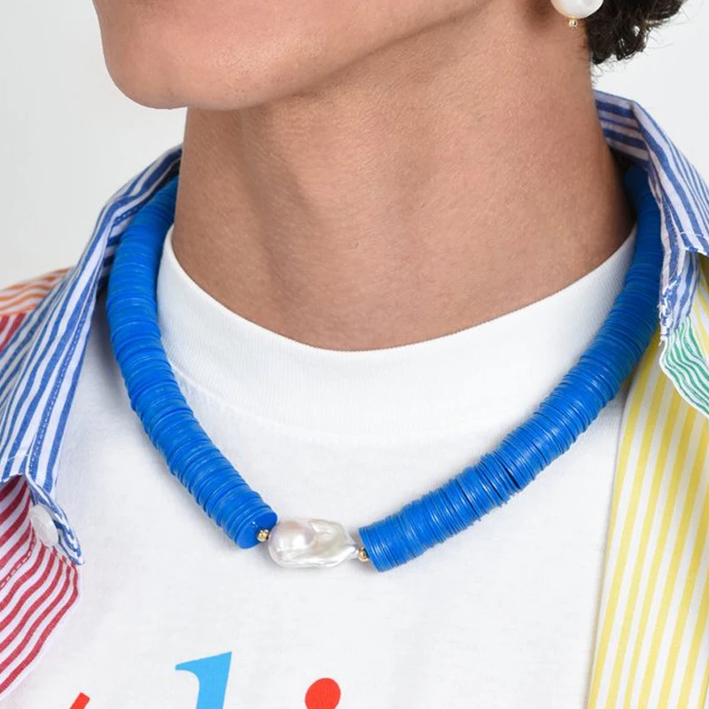 В стиле хип-хоп Чокеры синий панк пресноводный барочный жемчуг RHYE регулируемый в африканском стиле диск из бисера ожерелье, Женские Ювелирные изделия, 2021 в богемном стиле
