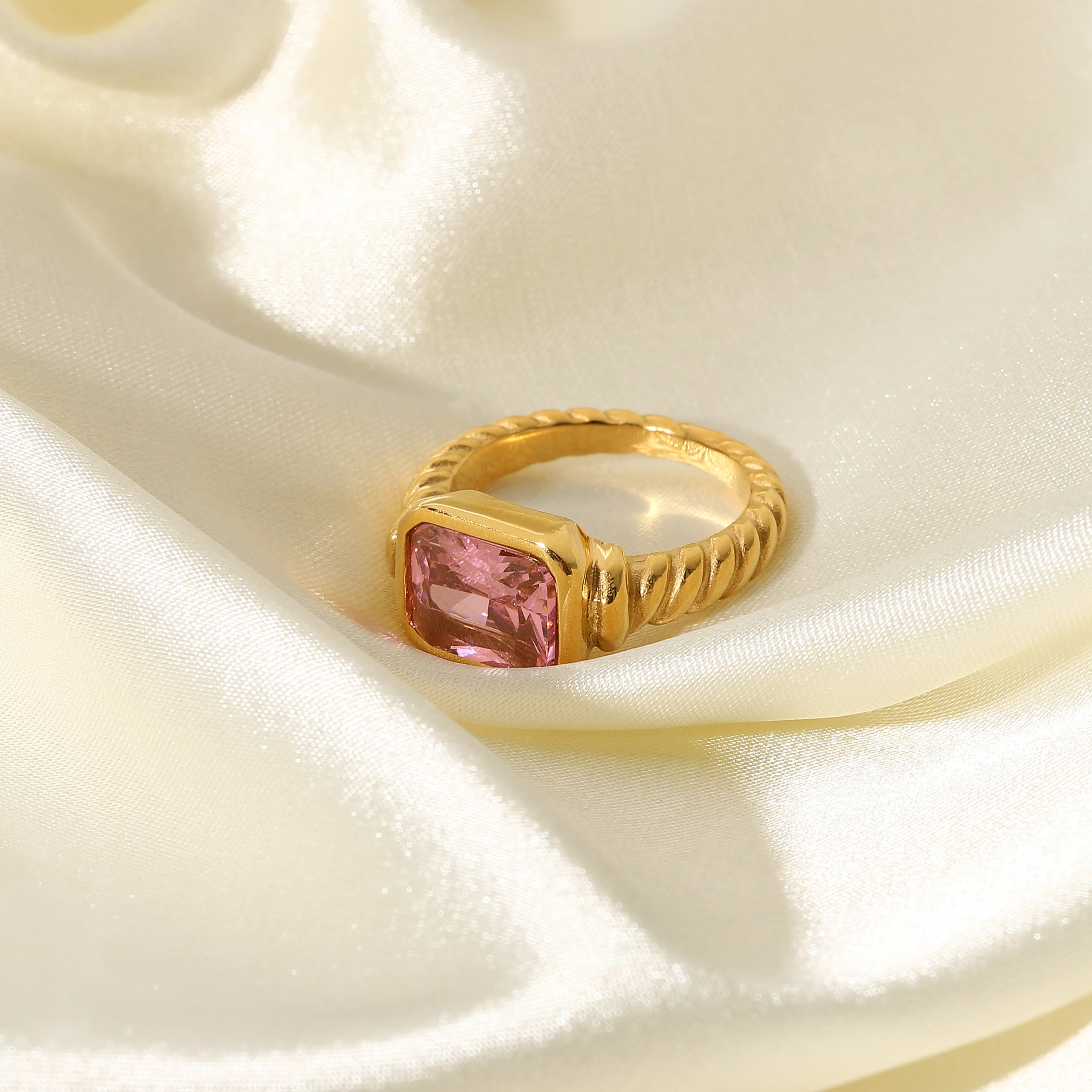Кольца jwelry женские из нержавеющей стали, прямоугольные витые Спиральные кольца с изумрудом и розовым цирконием, ювелирные изделия для девушек и женщин