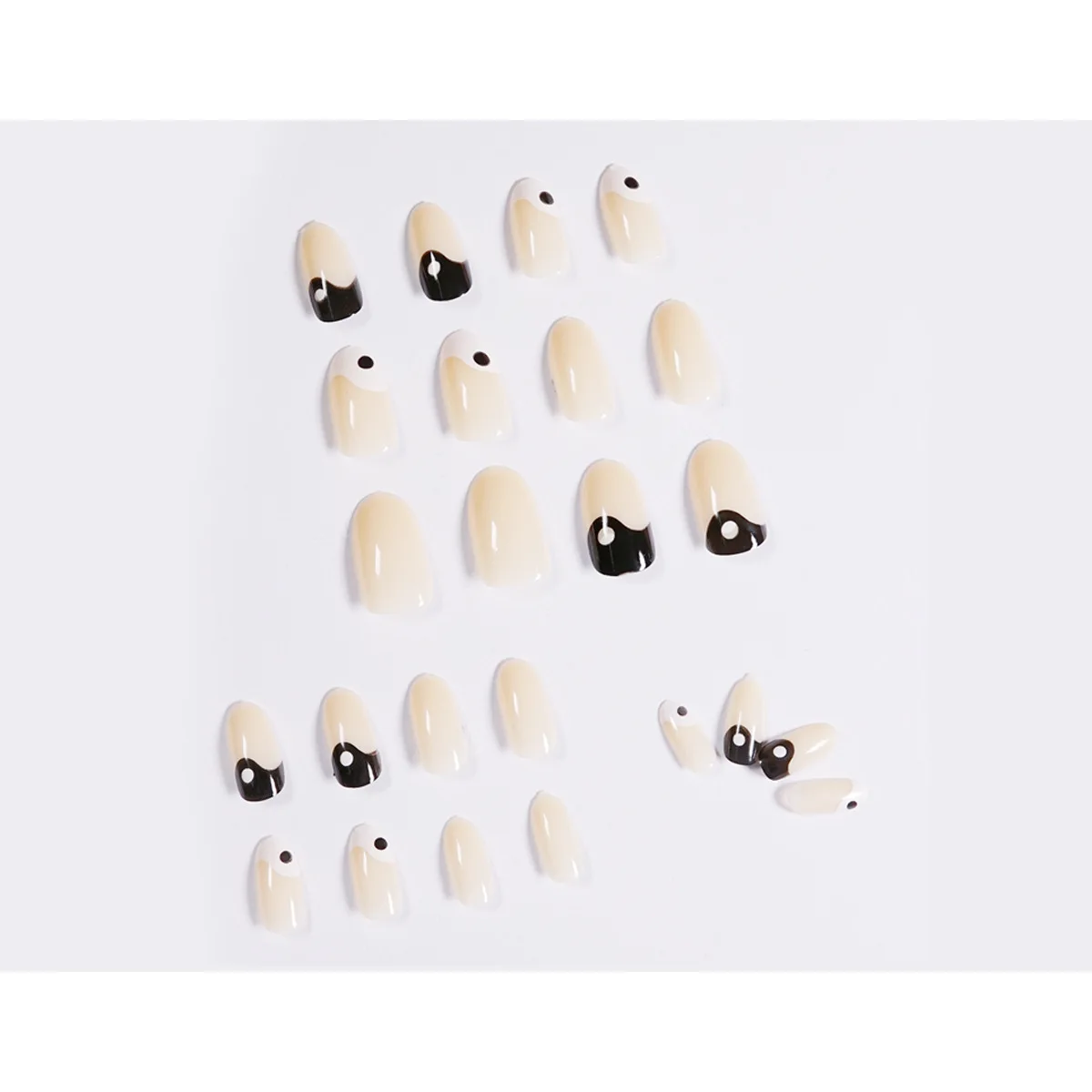 24 шт. телесного цвета Цвет длинные круглый накладные ногти для ног, полного покрытия, накладные ногти многоразовые черный, Белый Цвет Тай Чи Готовые накладные ногти с жидким клеем