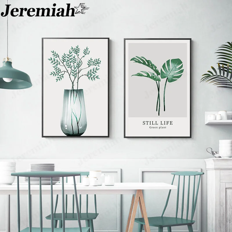 Зеленые растения, холст, картина, акварель, лист, общий плакат, скандинавский настенный постер, скандинавский Декор для дома, гостиной, аксессуары