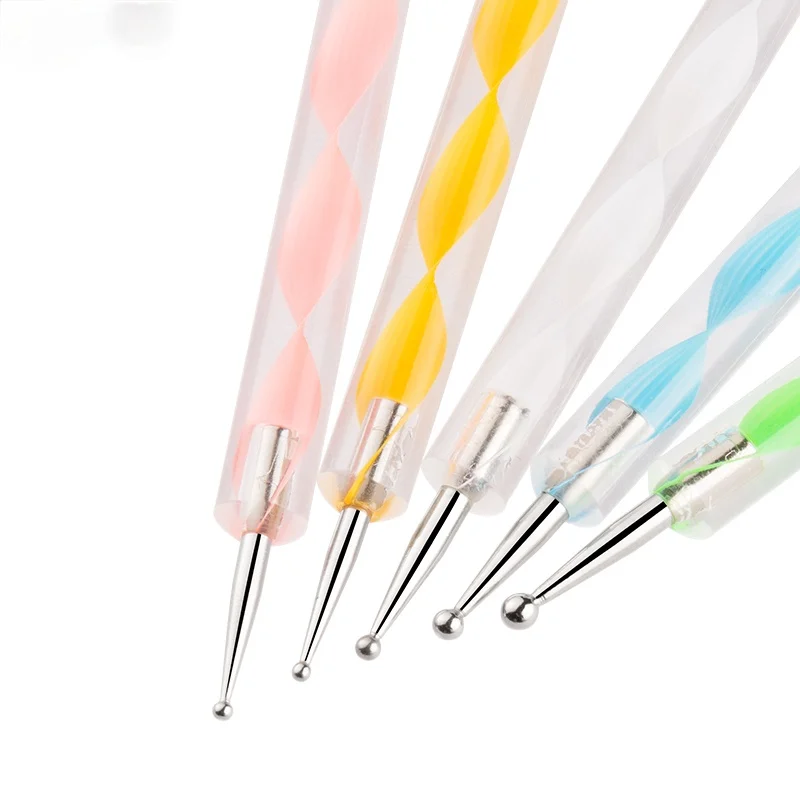 Особенности:А. 5 шт. двусторонние точечные инструменты:A.1.Это 5 точечных ручек для ногтей с 2 разными концами для разных желаний мраморностиА. 2Один конец с большим шаром и другой конец с меньшимА. 3.Идеально подходит для изобразительного дизайна ногтейА. 4.Подходит для профессионального или домашнего использованияА. 5Идеальное средство для женщин, которые любят макияжA.6.Состояние: новоеА. 7.Длина: Прибл. 4,92 дюйма/125 смА. 8.Цвет: случайный цвет