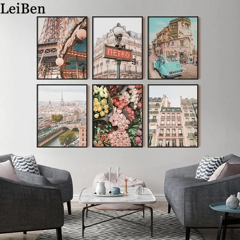 Картина на холсте с изображением Парижского города, Европа, пейзаж из путешествия год, настенный плакат, современные картины для гостиной, домашний декор