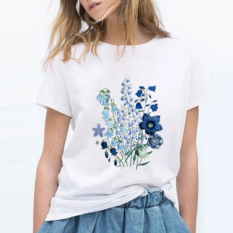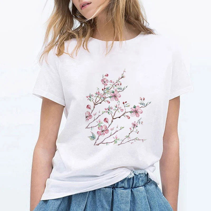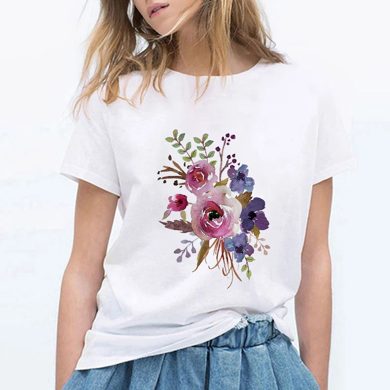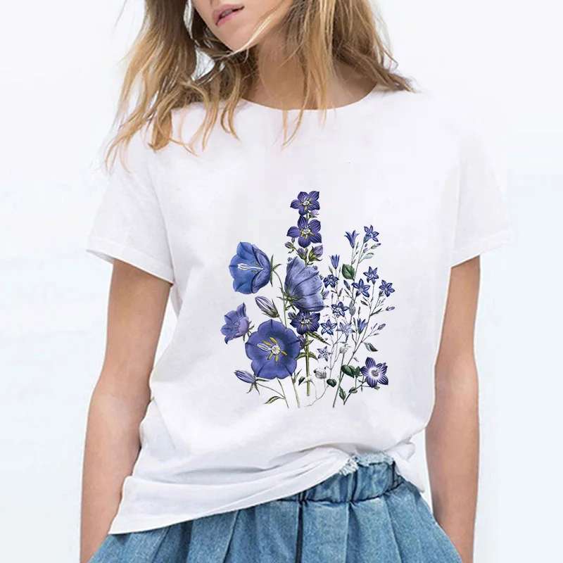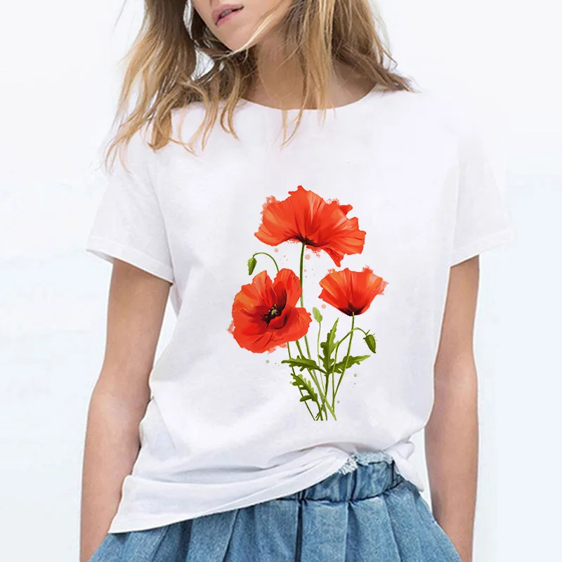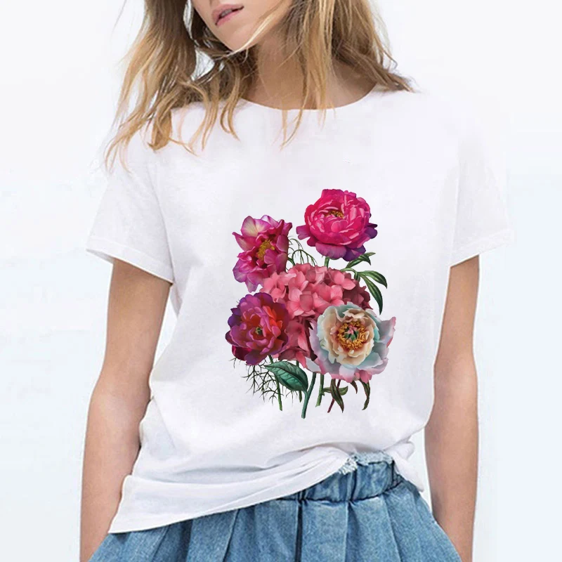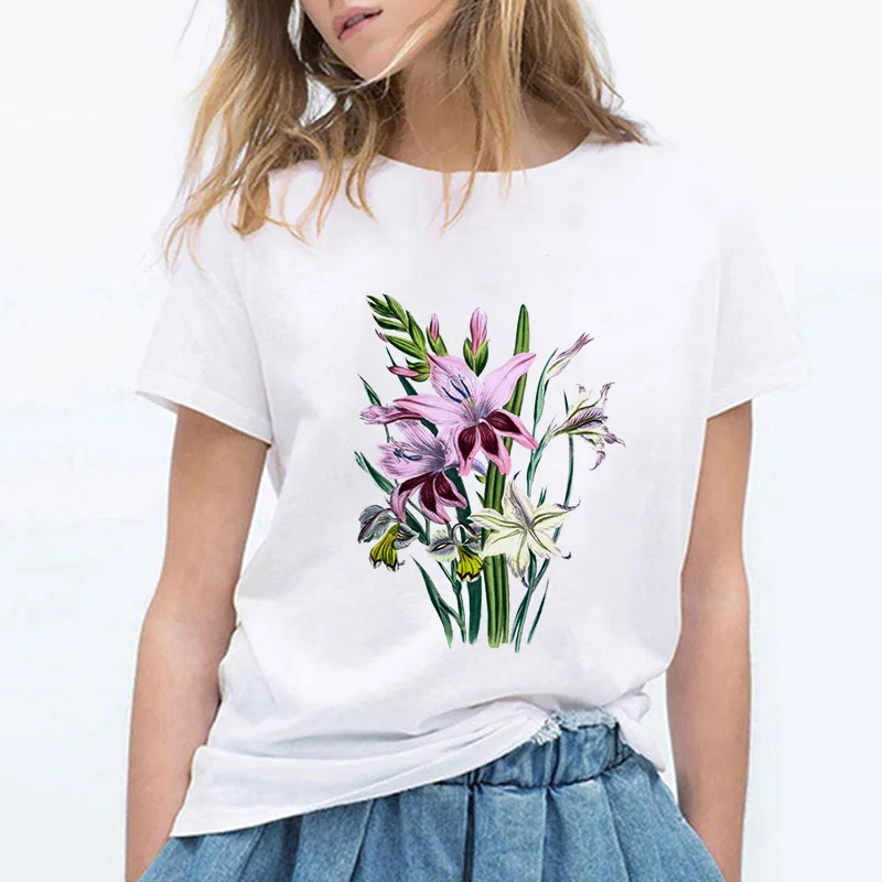 Женская одежда 2021, футболки с цветочным принтом, женский модный топ, женские футболки, повседневная футболка с коротким рукавом для женщин