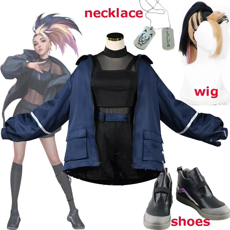 KDA Baddest Akali Косплей Костюм KDA AKALI Косплей сексуальный костюм куртка ожерелье парик обувь для женщин девушки Хэллоуин