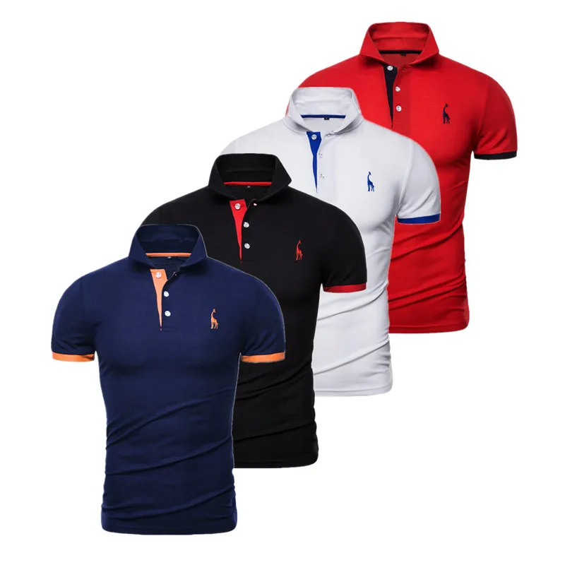 Рубашка-поло AIOPESON мужская с вышивкой, Повседневная деловая, с коротким рукавом, качественная облегающая, 4 шт.