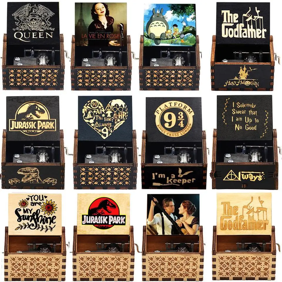 Антикварная деревянная резная музыкальная шкатулка Happy Halloween Атака Титанов Digimon тема День рождения Новый год рождественский подарок