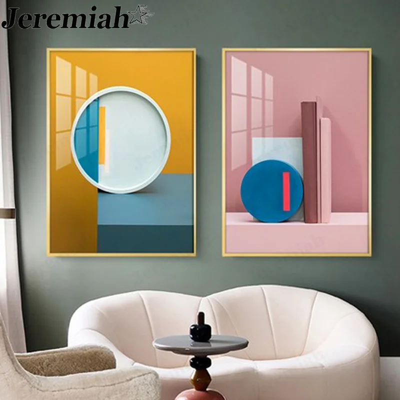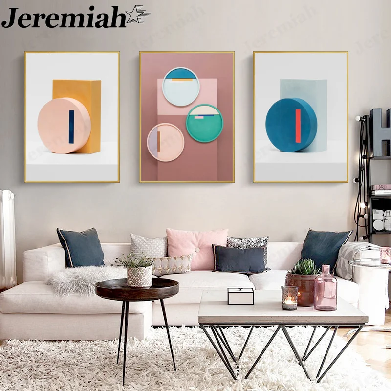 Простая Геометрическая Картина на холсте с розовым изображением, постер, скандинавский настенный художественный декор в скандинавском стиле для дома, гостиной, аксессуары, подарок