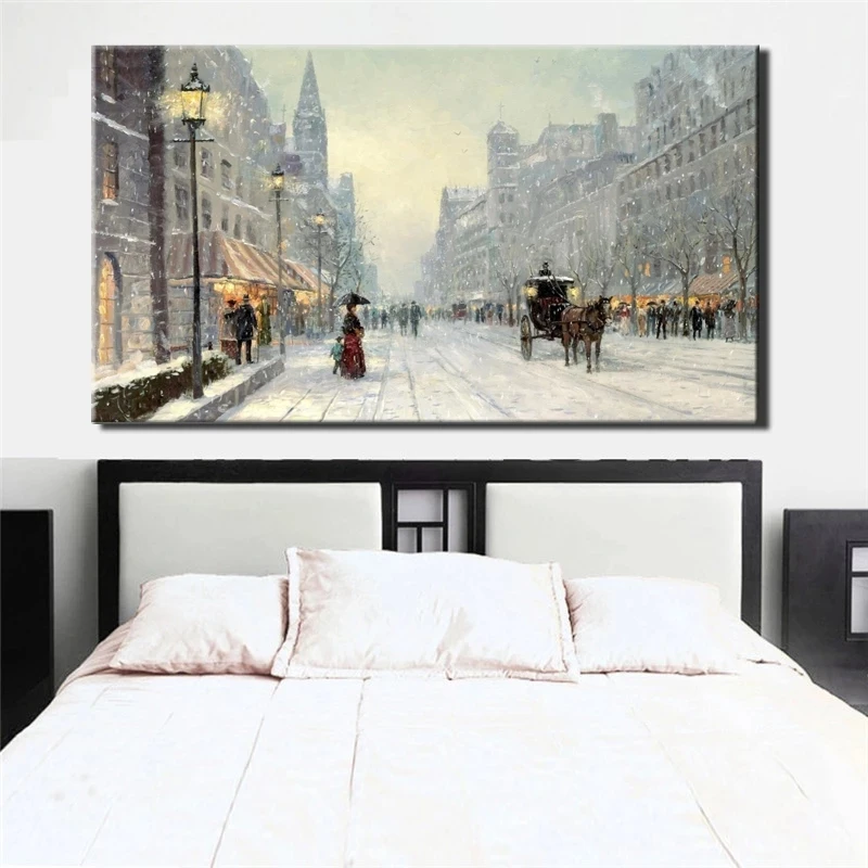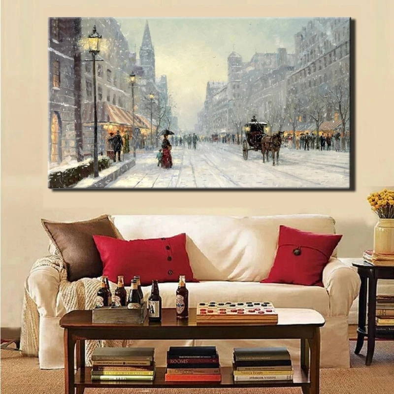 Современный город, зимний Снежный пейзаж, картина маслом на холсте,...