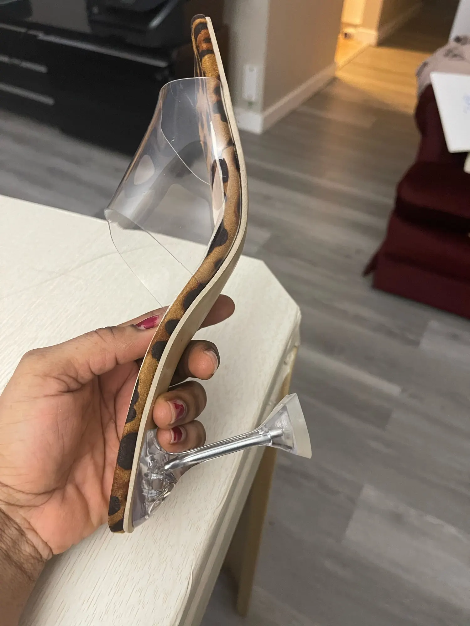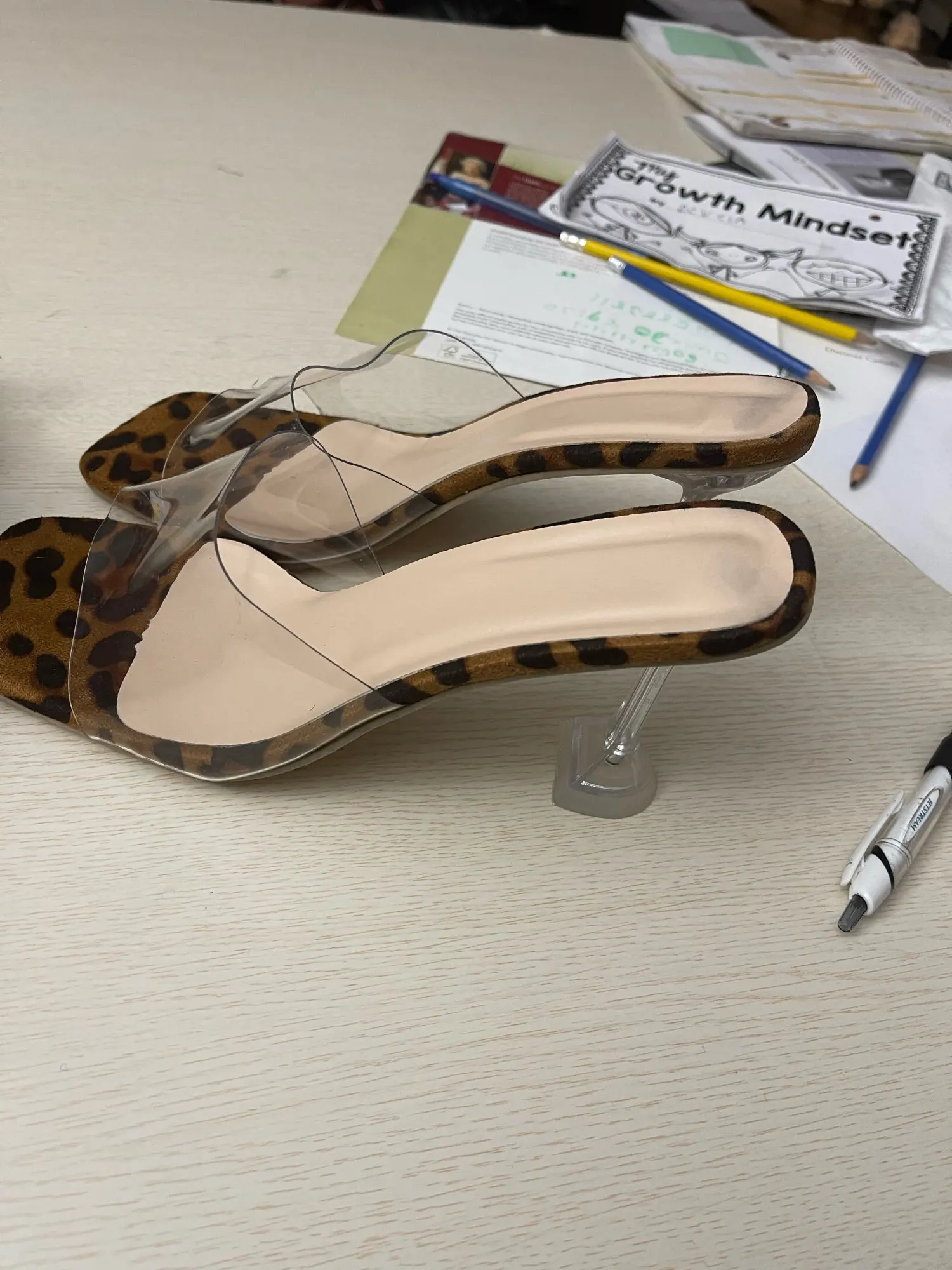 Сандалии женские с леопардовым принтом, босоножки на высоком каблуке, прозрачные Шлепанцы из перспекса, туфли с открытым носком, большие размеры 42, 2021