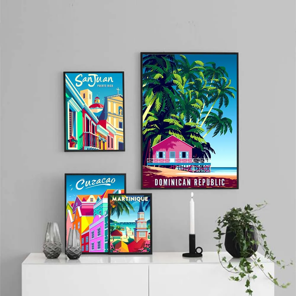 Постер в стиле ретро для путешествий, морской пейзаж, мультяшный цветной городской холст, Картина на холсте Гваделупа, Настенная картина для декора гостиной