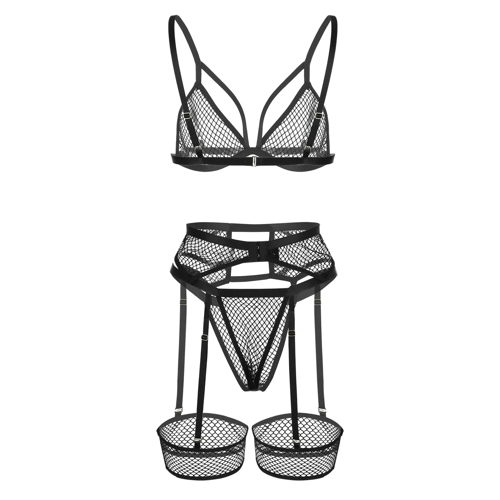 Новый Модный комплект нижнего белья, сексуальный черный кружевной бюстгальтер, подвязки, пояса, стринги, Соблазнительный комплект нижнего белья, женское внутреннее белье