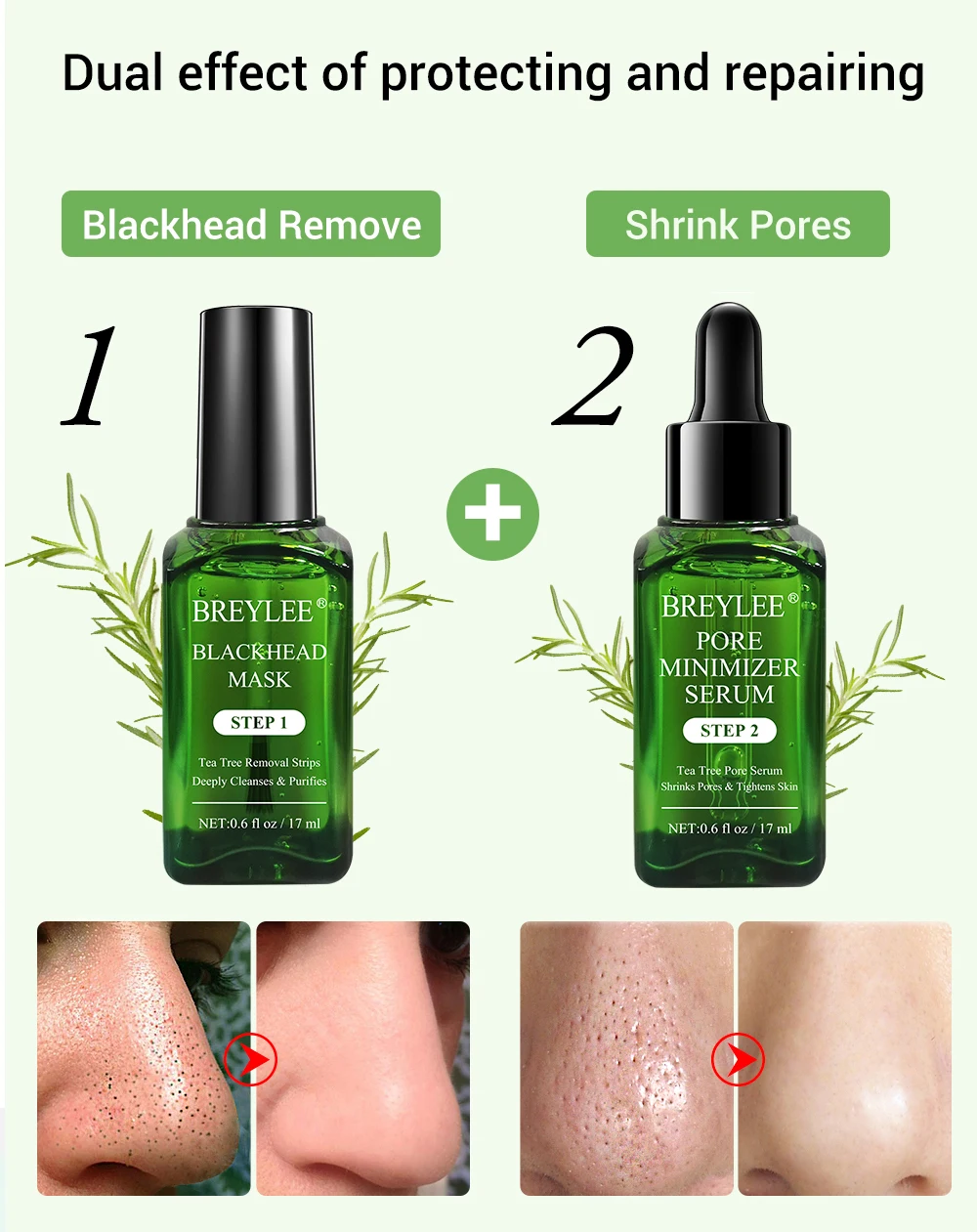 ★Название продукта: BREYLEE черная маска/17 мл/100 шт бумагаBREYLEE Pore Minimizer сыворотка/17 мл★Эффекты: глубоко очищает и очищает, сужает поры и подтягивает кожу★Как использовать1. После очистки кожи поместите теплое полотенце на лицо, чтобы открыть поры.2. Нанесите средний-толстый слой маски на желаемую область, чтобы избежать бровей, линии волос, области глаз и губ.3. Закройте полоски и хорошо прижмите их. Подождите 3-5 минут до полного высыхания, затем снимите их.4. После очистки черных точек Возьмите 3-5 капель сыворотки на ладони и нанесите ее на лицо, чтобы уменьшить поры и увлажнить кожу. Мягко массируйте до впитывания.★Примечание: рекомендуется использовать 1-2 раза в неделю.