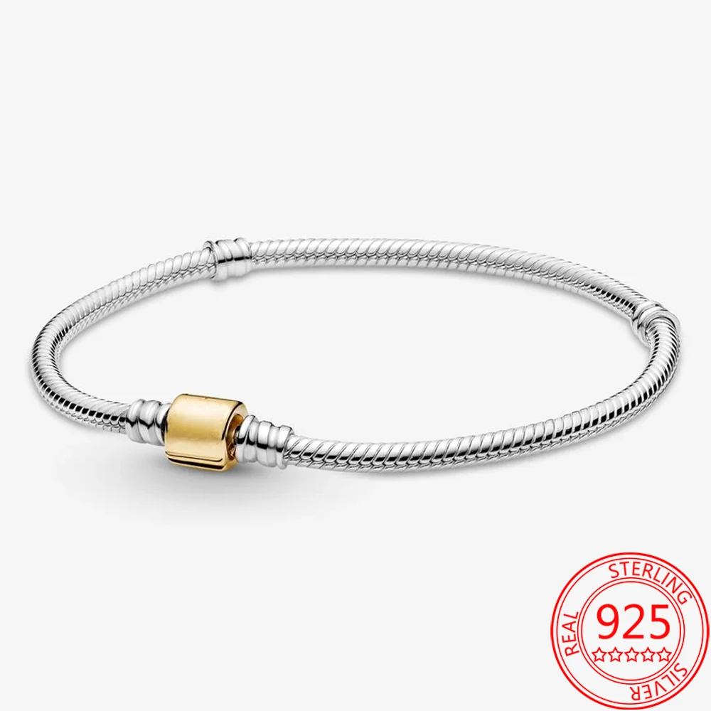 Оригинальное 925 пробы серебро базовый цепь Золотая Пряжка браслет "Момент" европейский бренд браслеты с подвесками женские изысканный подарок