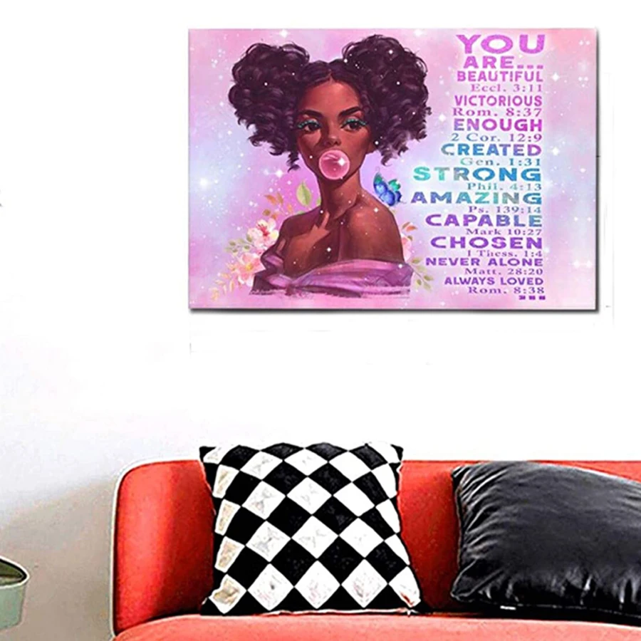 Африканский Американский алмаз вышивка холст искусство Вышивка мозаика полная дрель черная девочка Подсолнух живопись вдохновляющие цитаты